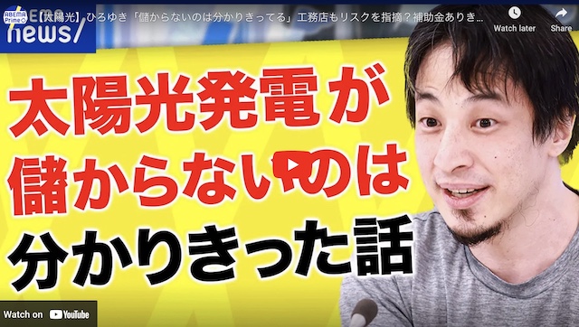 【ひろゆきさん出演】太陽光発電は元取れる?に本田がABEMA TVで解説しました。