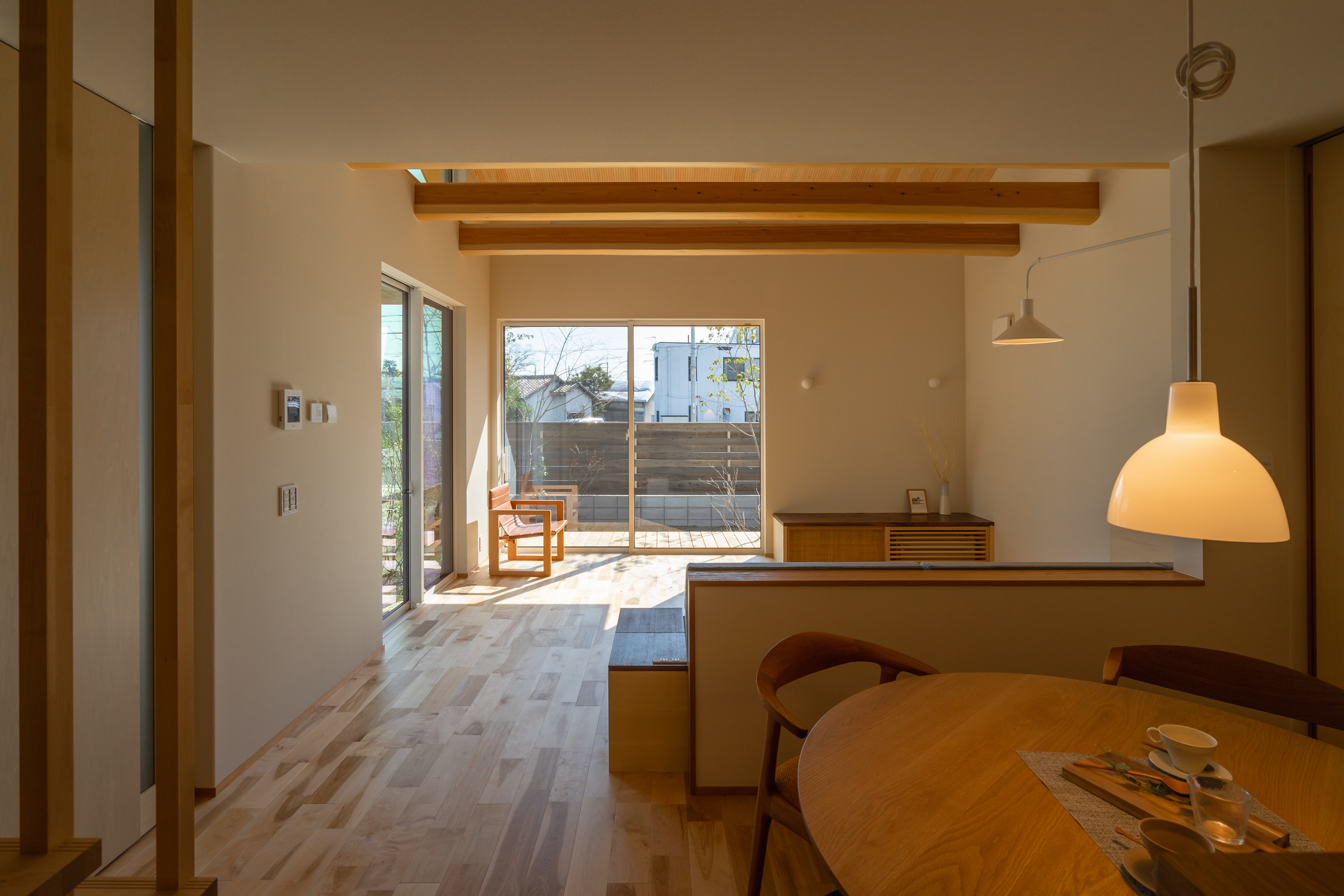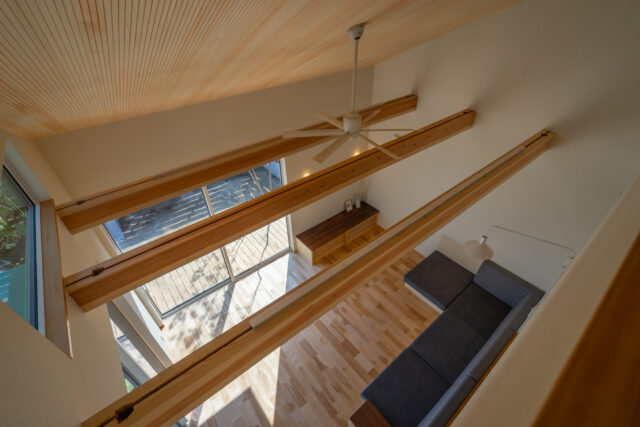 家族がそれぞれプライベートな空間も楽しめつつ、一緒にいる事を感じる事ができる家。